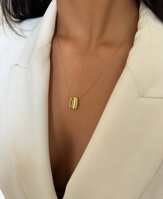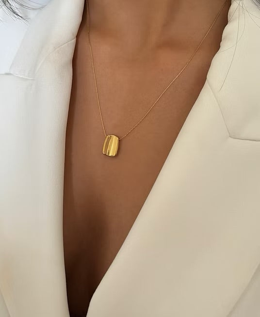 The hammered  dented pendant is a versatile and chic accessory that effortlessly complements a variety of looks. Minimalism at its best,  paired up with other jewelry or worn solo, its hammered texture and geometric shape add a touch of fun and fresh to any look.