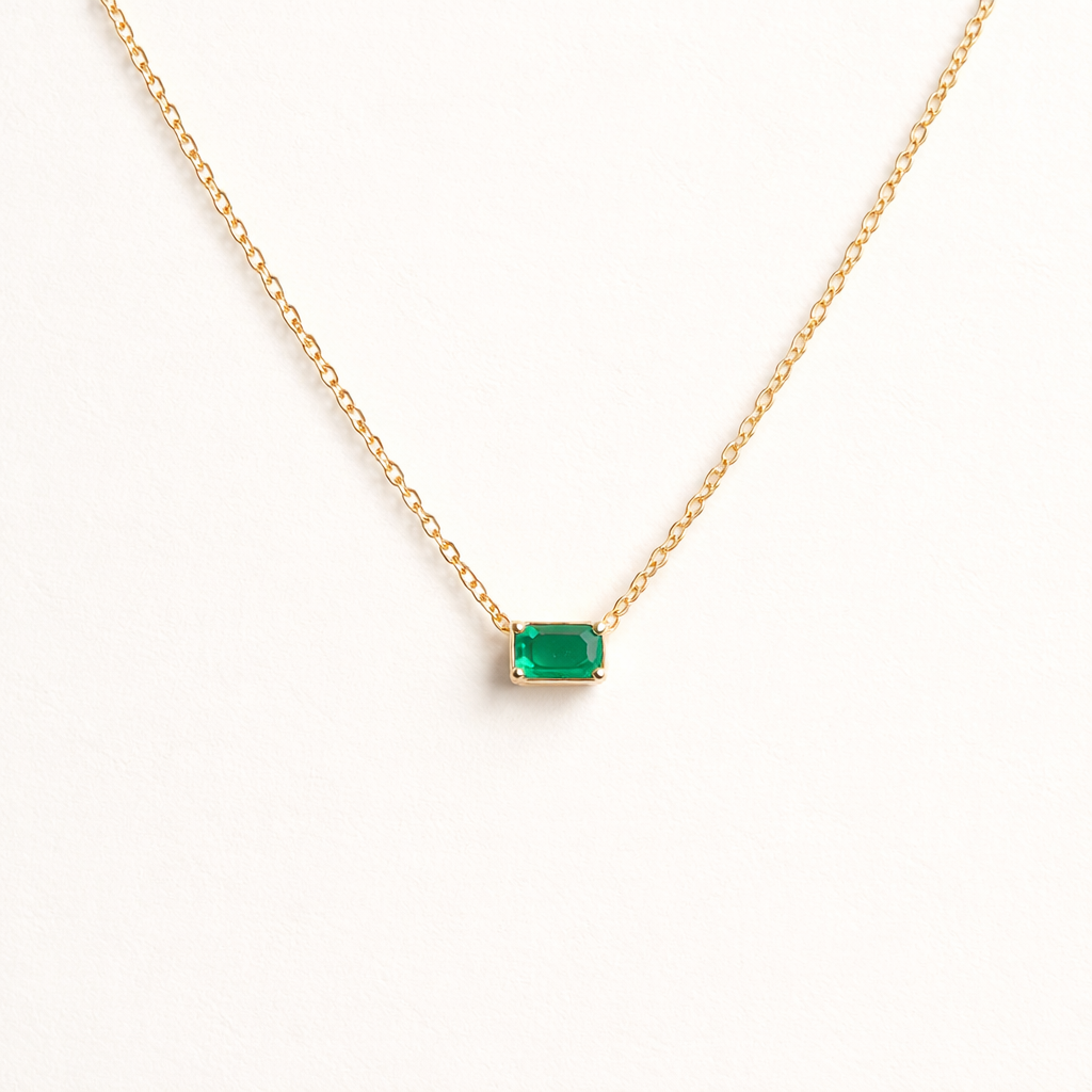 GENA , a timeless piece featuring a striking green emerald stone suspended in refined simplicity. The luminous emerald captures light with natural brilliance, making it an ideal choice for those who appreciate understated luxury. Perfect for layering or wearing solo, this single stone pendant adds a touch of sophistication to any ensemble, from casual daywear to evening occasions. A versatile investment piece that transcends trends .