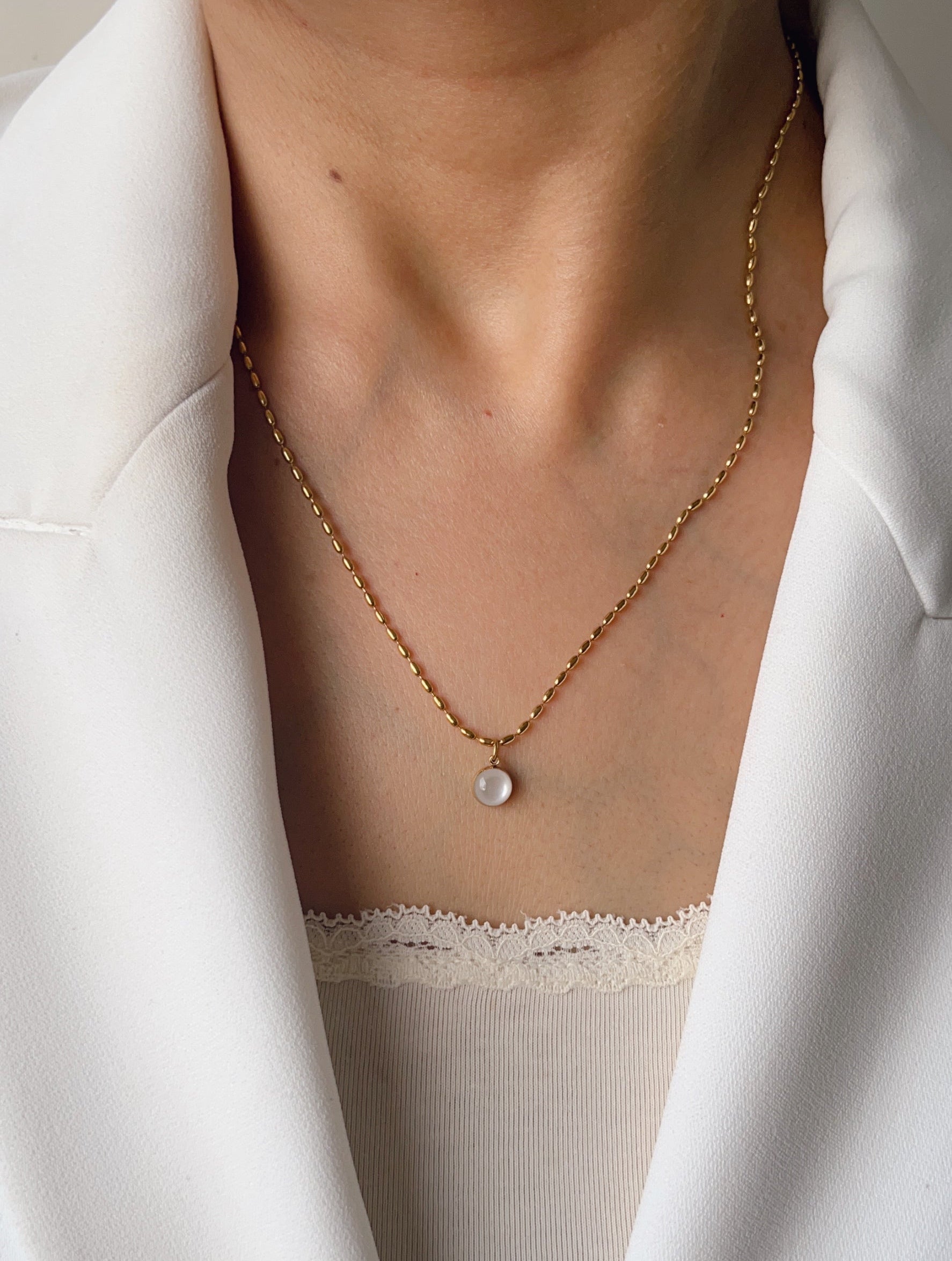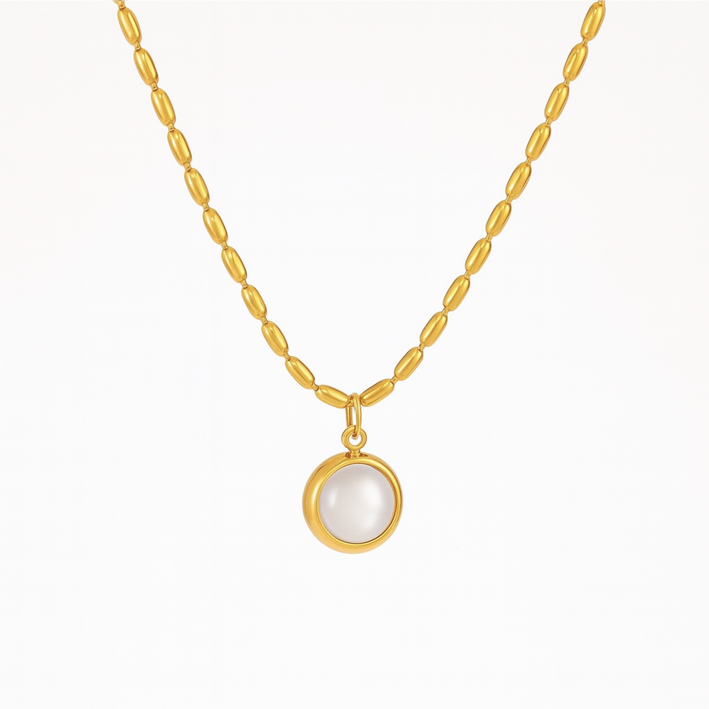 A circular single stone pendant thats nothing short of an elegant every day essential. This necklace can be layered  up with chains or worn solo , its ought to change your jewel game.
