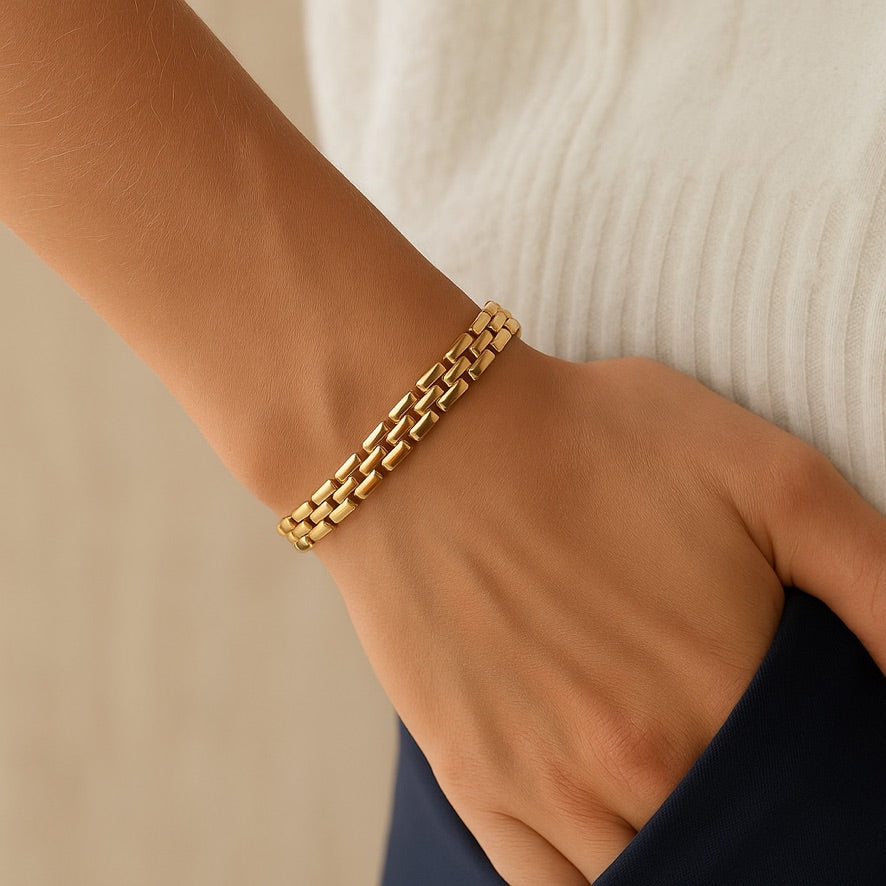 Inspired by the serene beauty of ocean waves, the INEZ cuff bracelet captures the essence of coastal elegance. Crafted with meticulous attention to detail, this sophisticated piece features fluid, wave-like patterns that evoke the tranquility of the sea. The polished finish and refined design make it an ideal accessory for both everyday wear and special occasions. A timeless addition to any jewelry collection that celebrates the calming allure of the ocean.