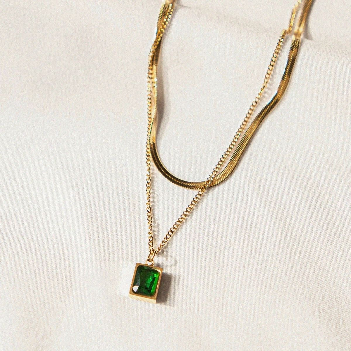 This exquisite green stone necklace paired with a flat snake chain is great to match with your green outfits, elevating your style to unparalleled sophistication. Crafted for the discerning jewelry aficionado, it embodies the perfect blend of luxury and versatility.